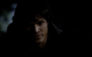The urgency and sense of danger builds: Tommy is strung up in a dark cave watching his friend get eaten by a monster. I love that Supernatural does horror the scariest way possible imho – we don’t see the monster clearly, just its deformed and hulking shadow as it approaches the helpless victim, silhouetted in the cave entrance. SO scary.