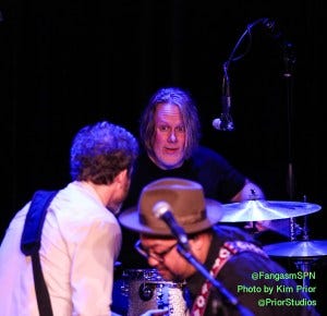 Someone reminded the band it was my birthday, and they were sweet enough to wish me a happy one. The questions were good ones and the band’s answers were sometimes insightful and sometimes downright hilarious. I particularly enjoyed Rob’s blow by blow story of how they got into the wrong Uber, loaded ALL their gear, found out it was the wrong one, got into another IDENTICAL vehicle, and somehow all their gear no longer fit.