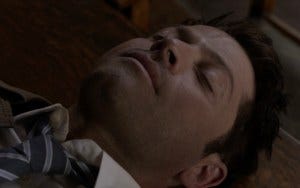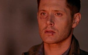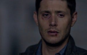 Jensen shows us the depth of Dean’s loss as Sam suggests that before they burn Castiel’s body, they try to get God to bring him back.