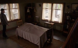 Meanwhile, in the bedroom upstairs, Jack faces his mother’s body. He gingerly touches her foot, sadness and confusion on his face. She taught him a lot even before he was born, so his loss feels real – as does the loss of Cas for him as well. Because it turns out the father Jack is looking for? Is not Lucifer at all. It’s Castiel. That’s who Kelly wanted to raise her child, and Cas had agreed. It’s Cas who Jack believed would protect him.