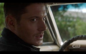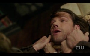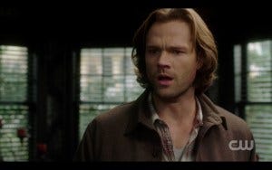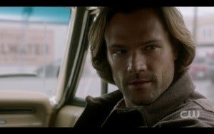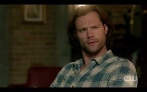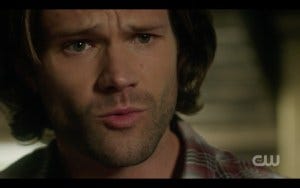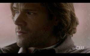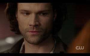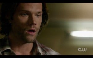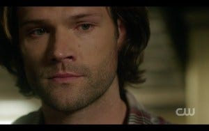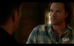Let’s talk about Sam’s arc in these two episodes, though, because that is hands down the most amazing part of both. Jared Padalecki is getting a chance to show us what’s been inside Sam for a long time, and he’s killing it – I hope he knows what a fantastic job he’s doing. I know he’s been eager to do that for some time, so I imagine it’s been just as rewarding for him to be able to gain insight into Sam as it has been for us as viewers. In this episode, he gets two glorious scenes to really “go there”. Which, for a psychologist like me, is tremendously fulfilling to really dig into.