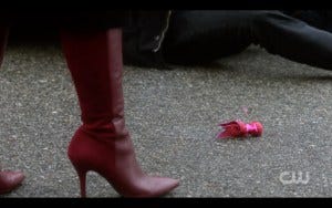 Another little quibble, though not about those scenes that we both loved. I’ve said this before, but I feel like Supernatural would be unbelievably amazing to watch unspoiled – imagine how the scene in which Rowena steps back into the picture (literally) would have played if we all didn’t know she was coming back! I would have totally lost it if I’d believed she was dead, and then we’d have that soon-to-be-iconic moment when she saves the day and we see those pointy red boots and then hear the ‘Hello boys.’ I mean, can you imagine?