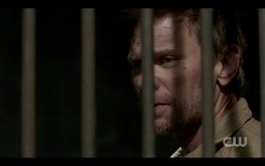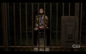 It’s the last straw when Castiel tells Lucifer that Jack would rather kill him than hug him, which sort of gave me a pang of ouch again before I remembered we were talking about Lucifer. Lucifer’s anger is the motivation for getting enough of his power back to break both he and Cas out of their cells.
