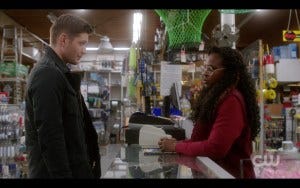 The other comedic scene that I absolutely loved was thanks to scene stealer Angela Moore, as Brenda the store clerk. We all could relate to her as the nasty witch sisters treat her like crap, and then she shows her smarts by correctly assessing Dean and rewarding his willingness to give the witch sisters some payback. Even better, though, we all could relate to her as she leaned forward to admire the view as Dean walked away. I can’t thank you enough for this character, Steve Yockey, and I can’t say enough about how well Angela Moore brought her to life even in a few minutes! She may not have been portrayed as a fangirl, but we all felt like she was US anyway.