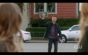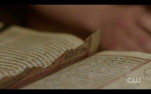 Kim: And thank Chuck for Sam’s heart. I don’t know why Rowena didn’t just throw out a spell and take the whole book… or at least take the page she needed. I don’t know why she chose to be vulnerable in front of Sam again. But I do know that I like that Sam still has that great big heart, full of compassion and sympathy and empathy. Kudos to him for giving Rowena the page that she needed.