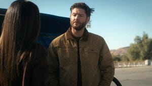 Ackles: Full disclosure, my stunt double did the one where the truck was actually moving. They wouldn’t let me do that. So the way that we recreated that for me was we put the whole truck on a gimbal, so the whole thing was moving. Then they set up these Ritter fans, these giant airplane propellors, throwing as much wind as possible at me. Then I had a wire on my back and I’m up on the thing and they’re like, start the gimbals! The whole thing starts rocking, the wind goes up, I can’t hear anything, there was a rock that got into one of them that shot me – I felt like I got shot in the shoulder. I was like, who’s shooting at me!? And then it was 3-2-1 go and they had a pad in the back of the truck, so I got to do that a few times. I mean, that’s just fun stuff!