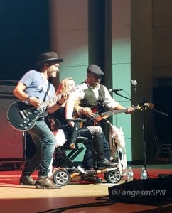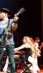 This was the last Supernatural con in Minneapolis (at least for now) so it seemed like everyone in attendance was determined to make it the very best one. The cast and the band love the giant theater with its for-real stage, complete with floor to ceiling (like 100 feet up ceiling) thick velvet curtains. There are layers of them, so finding your way onstage from backstage is a bit of a challenge – but it also makes everything seem like real theater and adds a feeling of professionalism to everything that happens.
