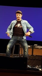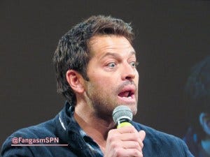 Saturday is Misha day at a con, which brings a lot of energy to the audience. Never one to shy away from the unusual, Misha came out and shared a gift a fan had just given him.