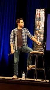 He also told a hilarious story about the importance of being honest in auditions. He once said he knew how to ski for a commercial and never had. He ended up on top of a large mountain with no way to get down but ski – and then strapped to the side of a rescue vehicle to get down the mountain, sheepishly waving to the rest of the commercial crew.