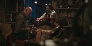 Eventually Bonham and Cassie have a talk as Bonham works on a saddle and slices his finger accidentally (Bonham always seems to bond with Cordell’s partners). It seemed like we were shown that injury for a reason – maybe to cast doubt on who’s responsible for some knife slicing the saddle strap? Honestly I don’t know. Bonham confesses to Cassie that there was a sense of relief when Marv died because then the whole land dispute thing could die with him.