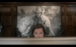 (Yes, that shot reminded pretty much everyone in the Supernatural fandom of the framed photo of fake Jared Padalecki on horseback on the wall of his house in The French Mistake!)