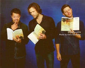 But as I often say when talking about the book, these are not your ordinary actors. It says something so important about Jared, Jensen and Misha that when the decision was made to end the show after next season, they told their long-time crew the news first, the people who are like family to them and whose livelihoods depend on this show. Then they took to social media themselves, recording a video for the fandom explaining that the fifteenth season would be the last. Although all three were clearly struggling with their own emotions, they wanted their fans to hear it from them. It’s the same reason they wrote Family Don’t End With Blood in their own words, because this is too important to telegraph through someone else. I respect the hell out of them for making that video.