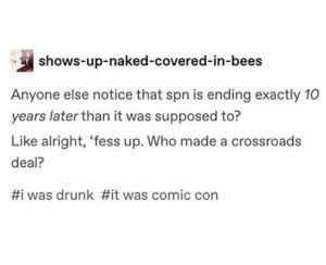 It’s also helpful to remind ourselves of the important thing that Supernatural’s very own “dad” posted after the news broke. Eric Kripke, who created this show and these characters, was the empathic father figure on Friday who reached out to tell us all that what he’s most proud of is the family created by his show – and that family is not going anywhere.