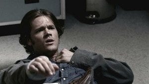 Padalecki captures all of Sam’s vulnerability here – he looks like a little kid, an orphan, desperate for his big brother’s reassurance. And it’s heartbreaking that Dean can’t give it.