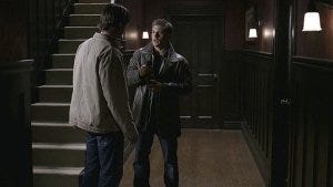 When they’re in the hallway and away from Evan, he asks if Dean’s all right (because he’s clearly not). Dean defensively says sure, why wouldn’t I be? Then he suggests that he go to the crossroads and summon the demon while Sam tries to hold the hellounds off.