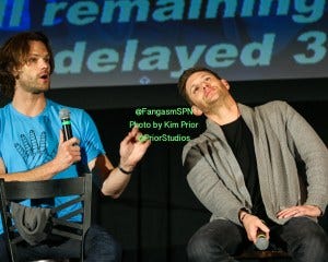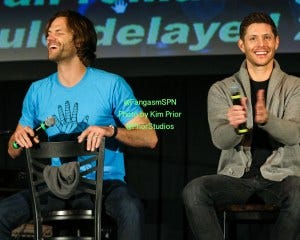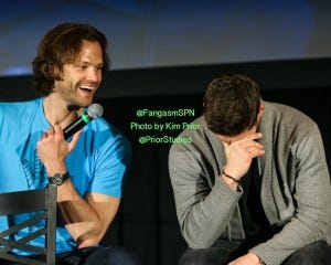 Jared and Jensen then sat on their chairs, only to realize the chairs swiveled. They are now five year olds. And that pretty much set the tone for the entire panel.