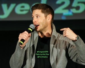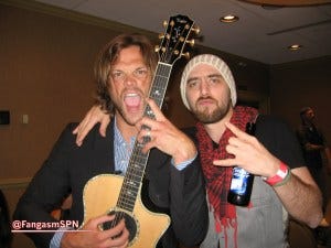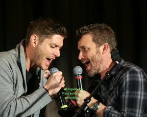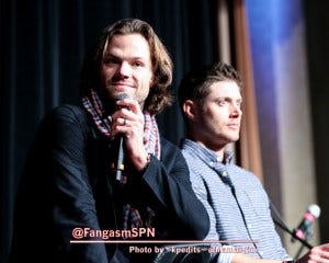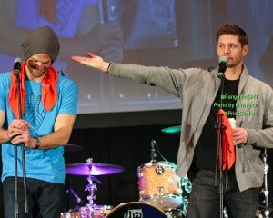 The last question fan, Theresa, also won the day by asking Jensen to sing Sweet Home Alabama. Which he did! With Jared clapping and cheerleading.