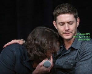 Jensen: That hug at the end was, I think, a little more Jensen hugging Jared than it was Dean hugging Sam. But hey buddy, you made it.