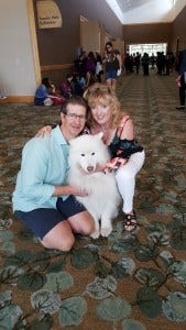 There were lots of SPN alums on hand for karaoke and during the con, most of which I forgot to take photos of, but I had to have a picture of the lovely Kuma, star of television commercials, and his owners Kevin and Jill Parks. Kevin has been with Supernatural as a First Assistant Director ever since I can remember, and is instrumental in making the show the high quality tv that it is. In fact, he’s joking referred to as “Parkasapedia” for his encyclopedic knowledge of SPN canon! Kuma has appeared on the show too, as well as in that Flonase commercial you see all the time.