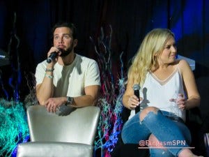 They both talked about how much they appreciate the ongoing text thread that the women of SPN have going, where they offer each other advice, or sometimes toss around song suggestions for Saturday Night Special. I’m always struck by the parallel between what this show has done for the cast and for the fans – both have found lifelong friends who we rely on for support. SPNFamily, in other words.