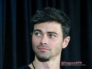 Matt said his most awkward moment was when he was supposed to be smiting Anna as Michael, but he had to put his hand on Julie McNiven’s chest and then she had to start shaking all over. Which was, needless to say, awkward.