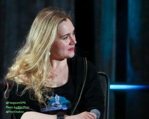 Rachel Miner took the stage next and had some lovely things to say about Robbie Thompson, who also wrote some of my favorite episodes of Supernatural. Her favorite episode that she was in is ‘Goodbye Stranger’.