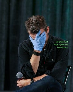 Misha told a hilarious story about being on Charmed. He was so new that he didn’t know what it meant when they kept telling him to hit his mark, wondering who this Mark guy was and why he was supposed to hit him.