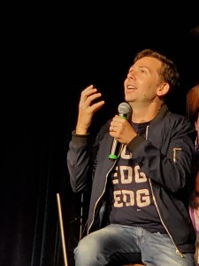 Gabriel told a story about fanboying over Michael C. Hall. When Michael finally stopped to say hi to him, Gabriel had just taken out his new Invisalign and was frozen there holding it in his hand, complete with the spit strand! (Ewwww) So he has much sympathy for any of us meeting the people we fan. (Moral of the story – do not wear your Invisalign to cons!)