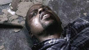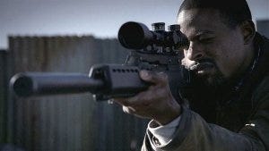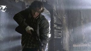 But as Gordon goes to stab him, Sam flips them over and grabs the rifle, pointing it at Gordon.