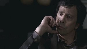 He looks around, calls out “Hello?” thinking someone’s following him, as the music grows louder and a train rushes overhead. We see the shadow of a man behind him in his car window as he finally gets there and then he’s stabbed, brutally. Blood spills out of his mouth as he dies and it’s brutal, graphic, so much more sinister because of the cinematography and the music and damn this show is so well done.