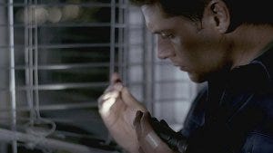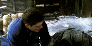 In the front room, Dean struggles to turn toward his brother’s voice, frantic to get to him, to see if he’s okay.