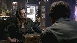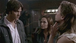 Back at the Blue Rose Motel, one of Supernatural’s memorable early season motels, Sam senses someone behind him in the dark and turns around to grab them. It’s Ava, the woman who had the dream about Sam.