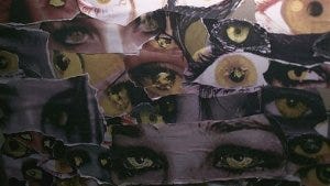 Sam checks out Scott’s room, finding lots of meds with the psychiatrist’s info on them. He opens the closet and finds a whole wall of cut out photos of yellow eyes staring at him.