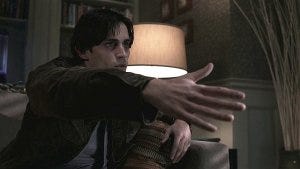 She tells him about her headaches, her nightmares, how she saw the guy stabbed in the parking lot and then read about it and realized her dreams were coming true. The night before she had another one, she says, where she watched Sam die. She expects him to think she’s nuts but Sam says she must be “one of them, the psychics” and then it’s Ava’s turn to think he’s nuts instead. She also doesn’t fit the pattern, since her mother didn’t die in a house fire.