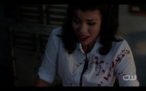 Sarah: I’m always happy to do the nitty gritty part of the job. In Wynonna Earp I got to do my own roll and drag stunt so the blood splatter was a walk in the park! Very simple, I sat in my chair and the special effects team used a spray gun. The first take, the splatter wasn’t enough so I had to quickly wash off and change into another set of clothes for a second take. Luckily we got it the second time round!