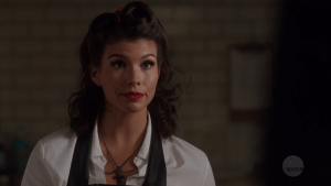 Sarah: After reading the script, I believed Athena to be a strong, determined character with a loving side to her. Although she may be seen as different (her style, music interests, job), she’s absolutely confident in who she is. I don’t think viewers got to see much of her office but it was plastered with her favourite bands, artists, pin up girls etc. She definitely didn’t hide who she was. Secondly, she didn’t have much issue telling anyone off, whether it was Sam, Dean or Dave (one of my favourite things about her). However, I knew Athena had a loving side and I tried to keep that in mind so she didn’t become too brash or even stand offish. When she finds out Dave robbed a bank and murdered someone, I didn’t think she could just flip him the bird and say have a nice life. I think there would be a lot of confusion and mixed feelings in a situation like that, a moral dilemma. She loved Dave and was with him for so long, she thought she knew him but now he’s turned into someone she doesn’t know – who is he really? She should walk away but it’s hard to walk away from someone you have so much love and history with. I reflected on my own relationship and tried to play it as honestly as I could. So maybe I didn’t give her much of a backstory, but I read in between the lines of the script to add little details about who she was and her thought process behind each of her actions.