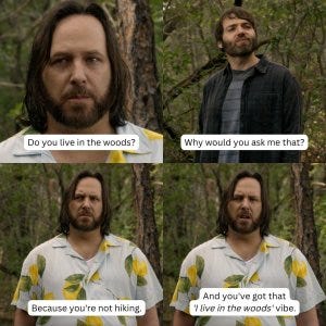 He advises Walter to be a lot quieter if he really wants to spy. I kinda love Donno. He tells Tonya and Luke that there’s a man living in the woods.
