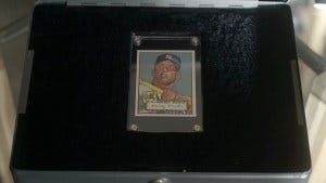 It’s a Mickey Mantle rookie card, worth millions. The old guy sighs even though he’s going to jail, saying it was worth it. He honestly didn’t seem all that happy to be out of jail anyway, saying he missed the built in company.