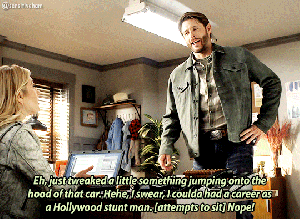 (Also every Supernatural fan half expected Jensen Ackles to open that trunk and find a devil’s trap and lots of weapons in it, let’s be honest…”