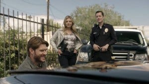 Everyone flirts with Hoyt in this episode, including the cop watching the car until they get there – to no avail. He tries hard, but she’s clearly not interested. Beau is mostly interested in the car, swearing when he opens the trunk and sees that someone cut her up.