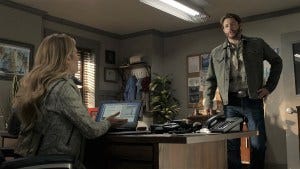 “No way he would’ve left his Baby naked and exposed,” Beau says, and every Dean Winchester fan swoons at Jensen Ackles calling a car ‘Baby’. At a convention recently, someone asked about the Supernatural shout outs in Big Sky and Ackles admitted that yeah, those are put in by him – and that the show has been totally down with going along with that. (Excellent marketing strategy, gotta say). Anyway, Beau is smart, figuring there’s probably a lojack on it.