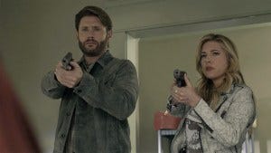 Get ready for tonight’s brand new episode of Big Sky with last week’s wrap up of the adventures of Sheriff Beau Arlen – in which he gets to indulge his fanboy side and do some badass stunts, probably much to the delight of actor Jensen Ackles. Last week’s episode once again opened with a Supernatural-esque creepy scary moment – a noise downstairs, a woman wakes her husband to check it out, when she runs downstairs to see what happened she finds him dead on the driveway. And someone driving away in his sportscar!