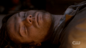 Onscreen, they snapped back to the past, Sam alive and well and teasing Dean about how they should take some time off and go camping. He’s smiling, cajoling, and he looks so good…