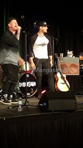 Corey: And she had no idea that I was gonna be there. It was the funniest thing, it was such a physical double take that she did. When we walked in, she was onstage with Louden Swain doing Dirty Deeds, running through it. So she looked right at me, then went back to what she was doing. Then she looked at me again and kinda went back, and then me and Jensen got up and it really kinda dawned on her and she was like OMG WHAT ARE YOU DOING HERE?! Really freaked out (laughing) and it was so awesome, it was really really cool.