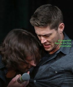 That energy was very evident on Sunday. It was so clear that the J’s had missed doing conventions almost as much as we’d missed them. In Jensen’s chapter of Family Don’t End With Blood, he writes about all he gets from being with the fans – that it’s energy to fuel them. They had been a long time away from their fandom fuel with Seattle con cancelled, and they were almost giddy to be back in the welcoming arms of fandom again. And damn, did that feel good.