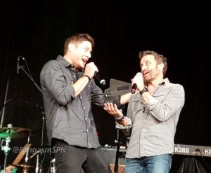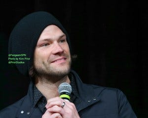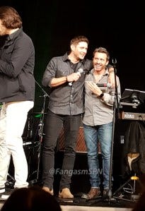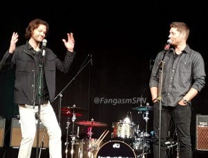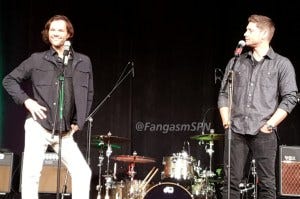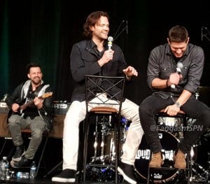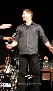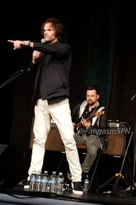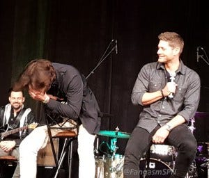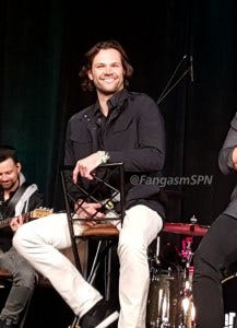 The last question fan, Theresa, also won the day by asking Jensen to sing Sweet Home Alabama. Which he did! With Jared clapping and cheerleading.