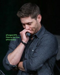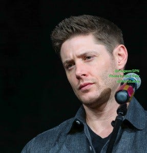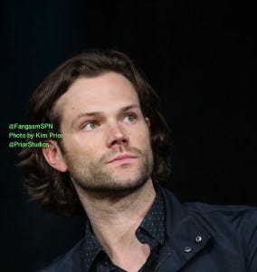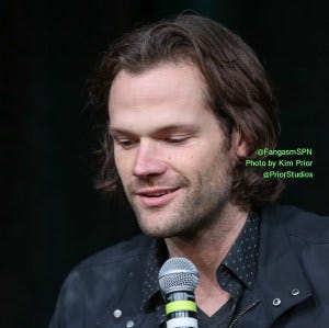 Jensen: She’s twelve, buddy. One-two. But you’ll notice, most of Jared’s tee shirts barely touch his belt. Which drives me nuts in a bad way, but all of you nuts in a good way.