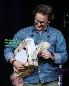 I missed the Rob Benedict solo panel for a meet and greet, but Kim caught a bit of it before she had to do some Jared photo ops with our friend Alana, which sometimes (especially going forward) require the emotional support that fans are expert at providing for each other.