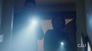 The episode was also very scary, filmed in true horror movie fashion, again reminiscent of early season SPN – perhaps because Phil Sgriccia, who’s been with the show all along, was directing. I absolutely loved the iconic scenes of Sam and Dean exploring the abandoned house by flashlight, coming slowly down the stairs, lit brilliantly and beautifully by Serge Ladouceur.