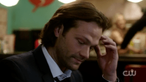 Sam: (a little later, checking on his brother the way the Winchesters always do): Hey, hey how’re you feeling?